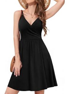 WEACZZY Women's 2025 Summer Dresses V Neck Spaghetti Strap Sundress Casual Beach Flowy Mini Dress with Pockets