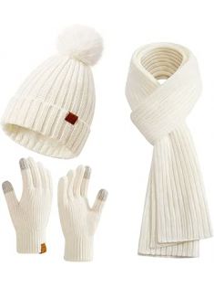 Womens Long Scarf Gloves and Hat Set Cold Weather Hat Scarf Glove Set for Women Winter Beanie Hats with Pom Pom