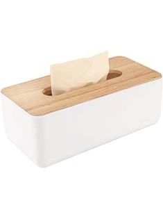 Wood Tissue Box Cover for Disposable Paper Facial Tissues, Wooden Rectangular Tissue Box Holder for Storage on Bathroom Vanity, Bedroom Dresser, Night Stand, Desk(Large(10.2 x 5.1 x 4.5))