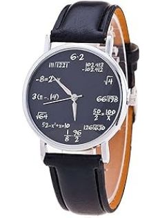 Women Men Math Formula Equation Dial Leather Quartz Watch Student Watches (Black)