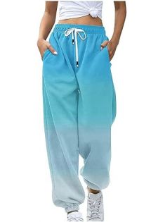Womens Hiking Pants Lightweight Print Loose Fitting Sweatpants Cute Fall Bottoms High Waisted Trousers for Women