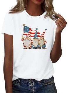 Womens Fashion Short Sleeve Tops Round Neck 4Th of July Patriotic American Flag Independence Day 2025 Tshirts