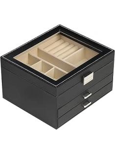BOOVO Clear Lid Jewelry Box,3 Layers Jewelry Organizer Large Multi-Functional Jewelry Storage Box with 2 Drawers,Jewelry Display Case of Rings Earrings Necklace Bracelets for Women Girls (Black)