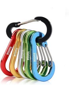 Booms Fishing CC1 Multi-Use Carabiner Clip, 6 Pack Small Caribeener Clips, Mini Keychain Caribeaner Clip 2 inch, Aluminum D Ring Carabiners, Multi-colored