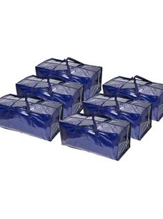 BOX USA Heavy Duty Moving Bags 29.1" x 14.2" x 13", Pack of 6 - Extra Large | Blue Plastic Moving Totes suitable for Packing Clothes, College Dorms, or used as a Water-Resistant Storage Tote