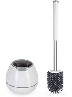 BOOMJOY Toilet Brush and Holder Set, Silicone Toilet Bowl Cleaner Brush, Bathroom Cleaning Bowl Brush Kit with Tweezers, Bathroom Accessories with Aluminum Handle - White