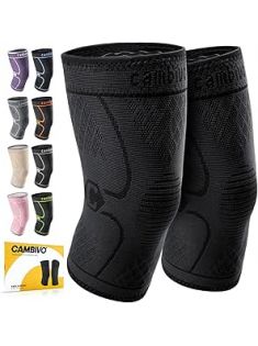 CAMBIVO 2 Pack Knee Braces for Knee Pain, Knee Compression Sleeve for Men and Women, Knee Support for Meniscus Tear, Running, Weightlifting, Workout, ACL, Arthritis, Joint Pain Relief (Black,Medium)