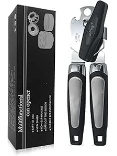 Can Opener Manual, Handheld Strong Heavy Duty Stainless Steel Can Opener, Comfortable Handle, Sharp Blade Smooth Edge, Can Openers with Multifunctional Bottle Opener