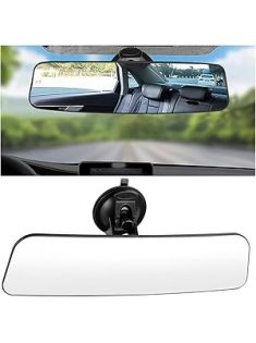 Car Rear View Mirror with Suction Cup, Anti Glare Wide Angle HD Auto Inside Rearview Mirror, 360 Degrees Adjustable Reduce Blind Spots, Universal for Vehicle, Marine, Boat, Truck, SUV, Van