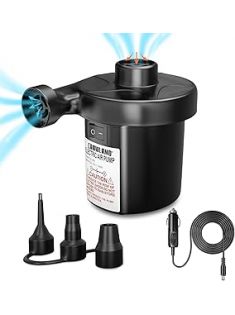 CAMULAND Air Pump, Portable Air Pump for Inflatable with 3 Nozzles, ETL Certification 12V Quick-Fill Inflator Air Pump for Air Mattress, Air Bed, Blow-Up Pool Toy Swimming Ring Car Adapter