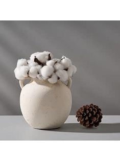Ceramic Vase, 5.8 Inch Terracotta Vase with Handles, Boho Decor Decorative Vase, Rustic Vase for Home Decor, Farmhouse, Living Room, Table - Beige