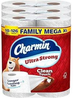 Charmin Toilet Paper Ultra Strong Clean Touch, 18 Family Mega XL Rolls = 126 Regular Rolls
