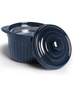 Ceramic Bacon Grease Container Keeper with Strainer, Frying Oil Storage Can, Navy