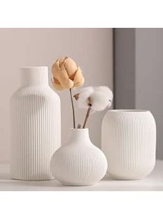 Ceramic Vase Set of 3, Decorative Vases Home Decor Modern Minimalist Pottery Vases for Bouquet Pampas Grass Dried Fresh Flowers, Bookshelf, Living Room, Shelf, Bedroom, Entryway Mantel Decor-White