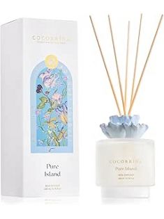 Cocorrina Gypsum Flower Reed Diffuser Set for Bathroom Décor – Pure Island Scent, 6.76 oz with Sticks & Oil – Home Fragrance for Bathroom & Living Space