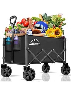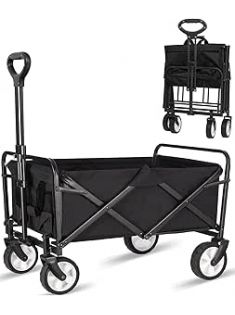 Collapsible Folding Wagon Cart, 350LBS Utility Large Capacity Cart Foldable Wagon with All Terrain Wheels, Grocery Wagons Carts for Garden Shopping Sports Camping, Black