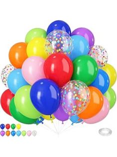 Colorful Balloons Rainbow Assorted Colors Balloons Set 12Inch Red Blue Yellow Green Pink Purple Orange Latex Party Balloons with Multicolor Confetti Balloons for Birthday Carnival Party Decorations