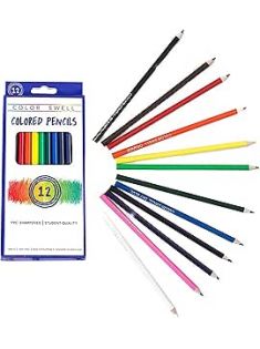 Color Swell Colored Pencil Pack 12 Count Assorted Vibrant Pre-Sharpened Colors Perfect for Kids, Teachers, Classrooms, and All Ages