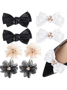 Coiris 4 Pairs Shoe Clips for Women Dress Shoes Rhinestone Flowers Black White Peal Bow Shoe Clips Pearl Exquisite Shoe Charms Lace Floral Shoe Accessory for Wedding Pointed Toe Pumps
