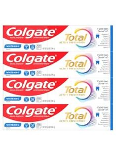 Colgate Total Whitening Toothpaste Paste, 5.1 oz, 4 Pack, Fluoride, Antibacterial, for Plaque, Gingivitis, Sensitivity, Stain Removal, Clinically Proven, Mint, Teeth Whitening, Stannous Fluoride