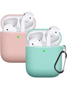 Compatible AirPods Case Cover Silicone Protective Skin for Apple Airpod Case 2nd &1st Generation (2 Pack) (Pink-Turquoise)
