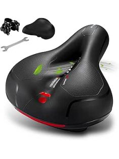 TONBUX Comfortable Bicycle Seat, Bike Seat Replacement with Dual Shock Absorbing Ball Wide Bike Seat Memory Foam Bicycle Seat with Mounting Wrench