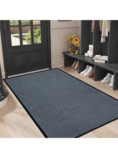 Commercial Grade Entrance Mat 3x5Ft Brush Step Entrance Rug with Striped Pattern&Rubber Border Indoor Outdoor Low Profile Rubber Entry Carpet Mat for Hallway,Home,High Traffic Area