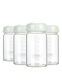 COMI Wide Neck Glass Breastmilk Collection n Storage Bottle, 4 Packs, 6oz with Screw Ring Sealing Disk; Re-markable Sealing Disc. BPA Free, Fits Breast Pumps & Nipples (4 Gray Lids)