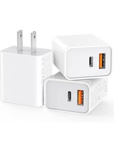 CSODINCE 3 Pack USB C Wall Charger, 20W Durable Dual Port QC+PD 3.0 Power Adapter, Double Fast Plug Charging Block for iPhone 14/14 Pro/13/15/15 Pro/Pro Max/Plus, XS/XR/X, Watch Series 8/7 Cube,White