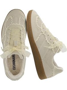 CUSHIONAIRE Belinda Women’s Lace Detail Casual Sneakers – Elegant Ribbon Lace-Up Shoes with Memory Foam
