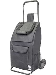 dbest products Trolley Dolly Compact with Pockets – Foldable Grocery Cart on Wheels – Multi Use Rolling Cart with Removable Bag, Storage Pockets, and Hand Truck Dolly Function, Black