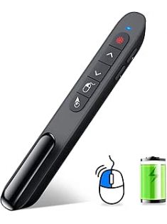 DINOSTRIKE Wireless Presenter Remote with Air Mouse Control, Rechargeable USB Presentation Clicker PPT Pointer RF 2.4GZ PowerPoint Clicker Slide Advancer for Computer Laptop Mac