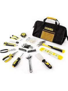 DOWELL 146PCS Homeowner Tool Set, Household Repairing Tool Kit with 14-Inch Wide Mouth Open Storage Tool Bag