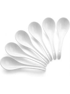 DOWAN Soup Spoons Set of 6, Ceramic Chinese Soup Spoon, Asian Soup Spoons, White Japanese Spoon Large for Ramen Pho Wonton Dumpling Miso, Deep Oval Hook Design