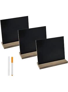 DSTELIN 5 X 6 Inches Mini Tabletop Chalkboard Signs with Vintage Style Wood Base Stands, Set of 3