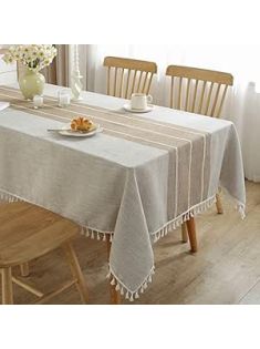 JIALE Tablecloths for Rectangle Tables, Cotton Linen Table Cloth Waterproof Tablecloth Wrinkle Free Farmhouse Dining Tables Cover, Soft Fabric Table Cloths with Tassels, Brown, 55" X 70", 4-6 Seats