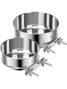 2 Pcs Small Pet Dog Food Water Bowl for Cage Stainless Steel Non-Spill Kennel Hanging Cats Pets Bowls with Clamp Holder Crate Feeder Dish for Small Dogs Pets (4.7x1.9'' & 3.9x1.7'')