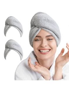 2 Pack Microfiber Hair Towel Wrap for Women Super Absorbent Quick Dry Hair Turban for Drying Curly, Long & Thick Hair 10 inch X 26 inch Lightgrey+Lightgrey