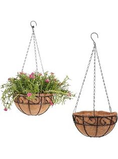 2 Pack 12 inch Metal Hanging Baskets for Plants Outdoor, Hanging Planters Basket with Coco Liners, Hanging Baskets Flower Pots for Garden, Patio, Deck, Porch Plants