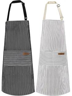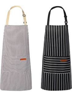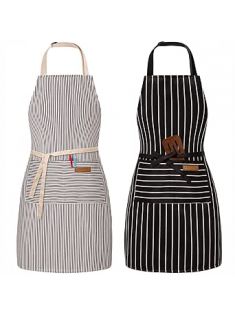 2 Pack Apron, Cooking Kitchen Aprons, Adjustable Bib Apron with 2 Pockets for Men Women Chef Apron