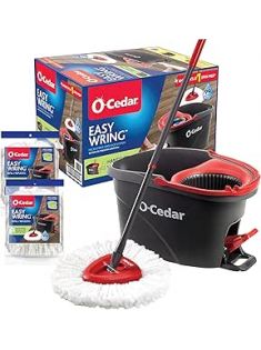 O-Cedar EasyWring Microfiber Spin Mop & Bucket Floor Cleaning System + 2 Extra Refills, Red/Gray