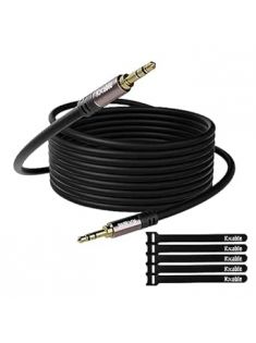 3.5mm Auxiliary Audio Stereo Cable 50 Feet, Long Male to Male Aux Cord, Gold Plated Connectors, OFC Core, Black Cable (with 5 pcs Cable Ties) - 50ft