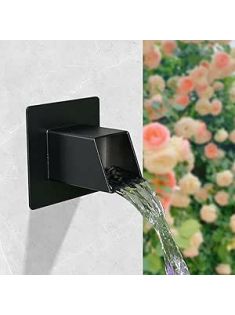 316 Stainless Steel 1.2-Inch Wall-Mounted Water Spout - Durable Outdoor Garden Square Waterfall Spillway with Integrated Spray Baffle, Modern Design for Patio, and Landscaping (Black)