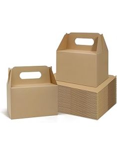 30 Pcs 9 x 6 x 6 Large Gable Boxes Cardboard Paper with Handles Kraft Brown, Gable Gift Boxes Party Favor Boxes Barn Style Carry Out Box Recyclable Packaging Boxes for Food Cookies Baby