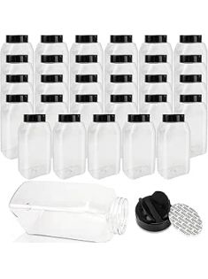 30 Pack 16 oz Plastic Spice Jars with Cap Clear Empty Square Plastic Bottle Containers with Lids Large Empty Powder Storage Container for Storing Spice Seasoning Powders