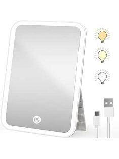 360° Rotating LED Makeup Mirror Rechargeable Travel Vanity Mirror with Lights Dimmable 3 Color LED and Brightness Portable Mirror for Desk Lighted Compact Travel Mirror with Touch Screen