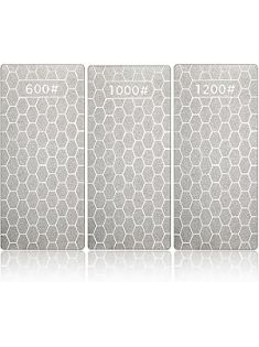 3Pcs Diamond Sharpening Stone Set Diamond Plate Sharpening Stone Professional Bench Stone for Kitchen Sharpening Dull Blunt or Tired Edges, 5.9 x 2.48 Inches (600 Grit, 1000 Grit, 1200 Grit)