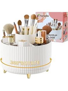 360° Rotate Makeup Brush Holder Organizer, Makeup Organizers Countertop, Makeup organization and Skincare Storage for Vanity, Desktop, Bathroom (White)