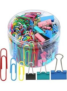 Paper Clips Binder Clips, 340PCS Assorted Size Paper Clips and Binder Clips, Colored Paperclips Large Medium Small, Binder Clip and Paper Clip Set for Home School Office Supplies