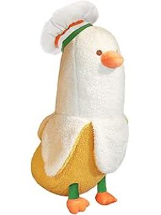 PEACH CAT Cute Banana Duck Stuffed Animal Long Banana Chef Duck Plush Pillow for Girls and Boys White 12"